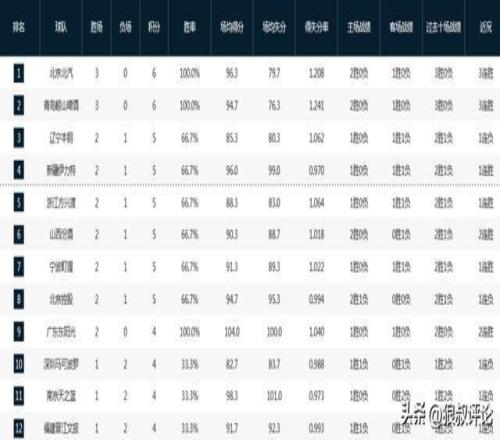 CBA最新排名:北京青岛3连胜争第1新疆山西强势反弹浙江0胜3负